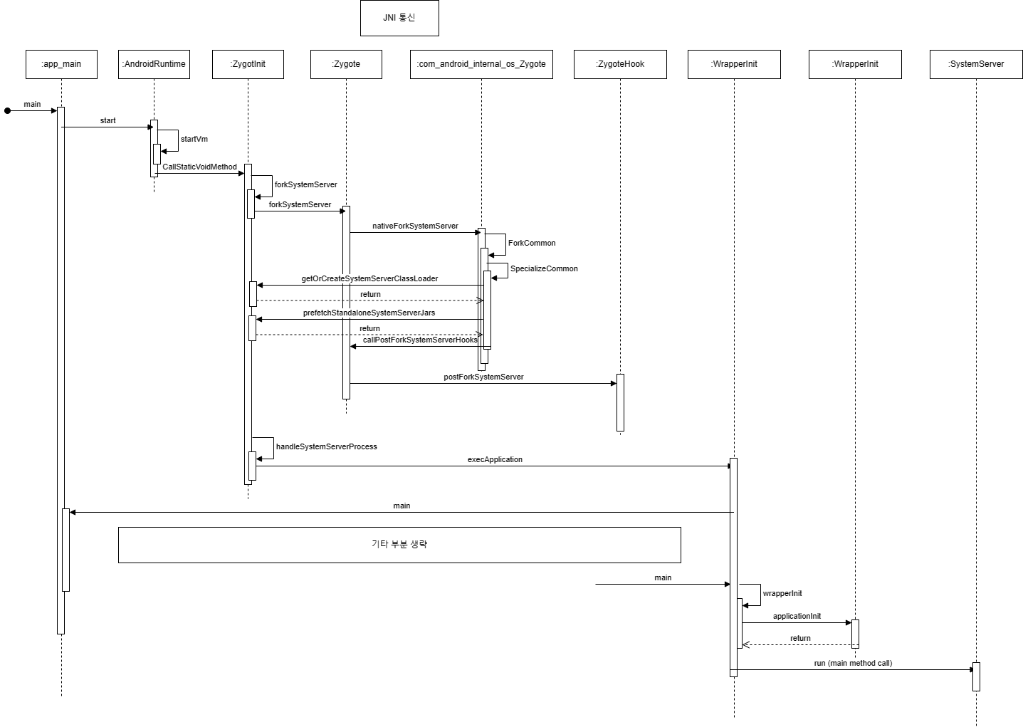 안녕하세요 개발자 도도 입니다 지난 번 포스팅에서 ZygoteInit의 호출 전까지 어떤 과정을 통해 불리나 확인을 해봤었는데요 이번에는 ZygoteInit 부터 다시 한 번 보고자 합니다 ㅎ 자, 바로 시작해보겠습니다 ZygoteInit.java 일부 생략된 코드 많습니다! /** * This is the entry point for a Zygote process. It creates the Zygote server, loads resources, * and handles other tasks related to preparing the process for forking into applications. * * This process is started with a nice value of -20 (..